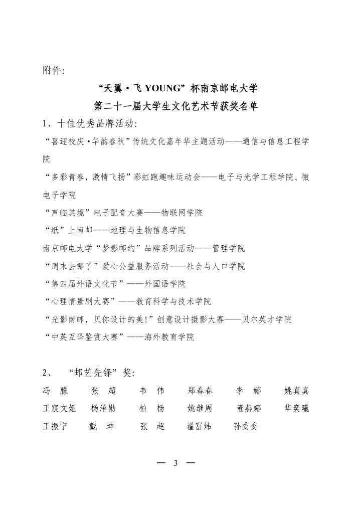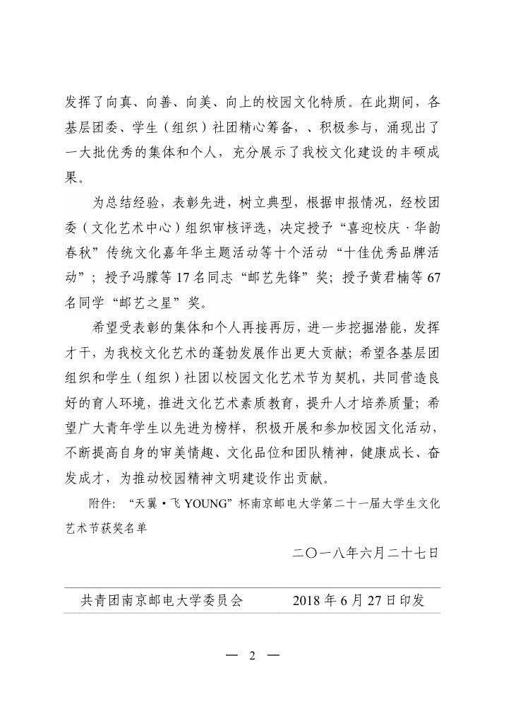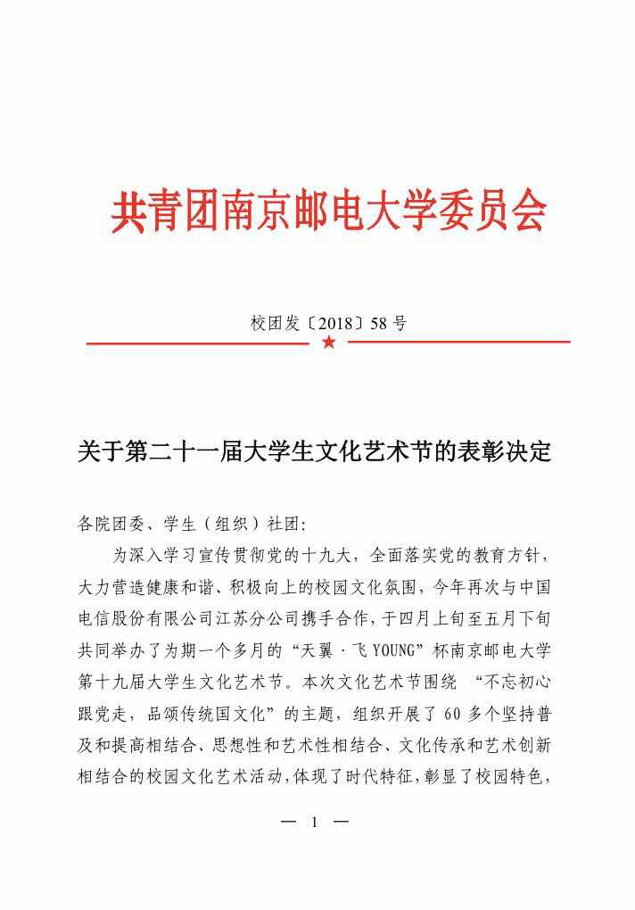 关于第二十一届大学生文化艺术节的表彰决定