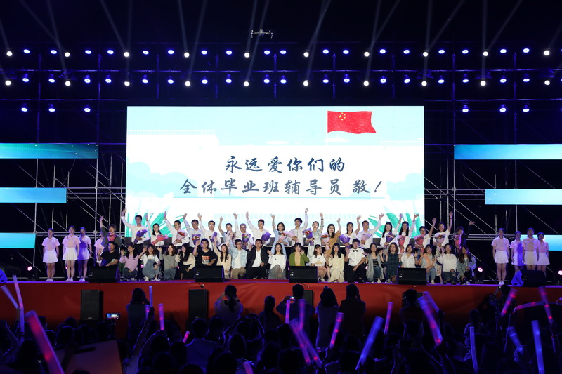 “佑·前程似锦”——奋勇前进。由毕业班辅导员及大艺团舞蹈团带来的音诗画表演《柚子,我想对你说》紧贴学生、饱含深情,将整场晚会推向高潮。歌伴舞《一路邮你》入心入情,唱出了家国情怀、道出了真挚祝福。整场晚会在师生大合唱《我和我的祖国》中圆满落下帷幕。