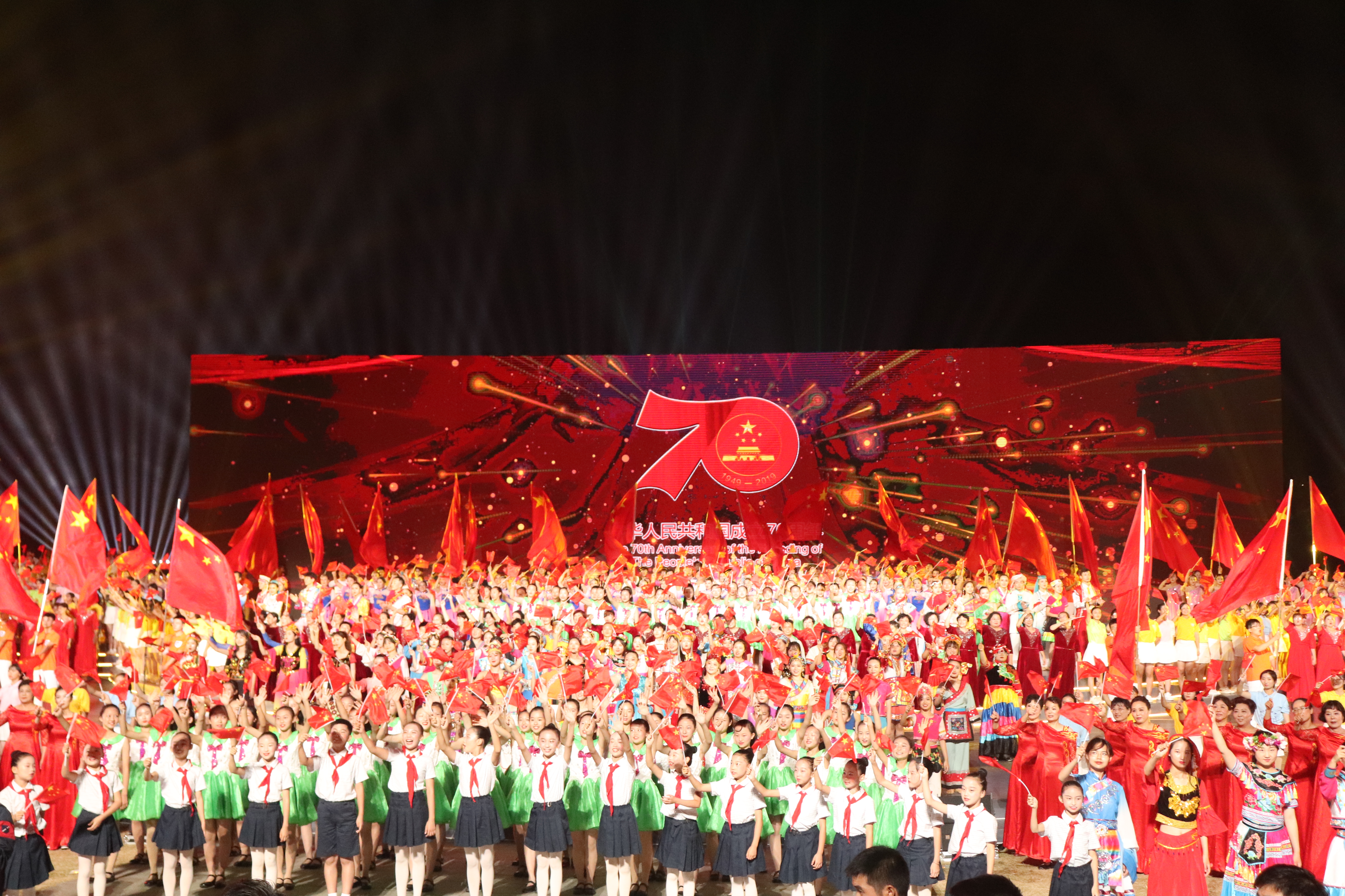 我校合唱团参与演唱的《没有共产党就没有新中国》、《我和我的祖国》、《爱我中华》、《歌唱祖国》经典曲目,在演出过程中将群众整体氛围推入高潮,同学们用慷慨激昂的歌声,积极向上的精神共同描绘出了新时代的盛世华章!同学们以最良好的精神面貌、最响亮的呼声口号、最热情的姿态一起庆祝祖国母亲的生日。在演出过程中南邮学子还担任起传递国旗的重要任务,鲜红的五星红旗在他们的手中迎风飘扬,他们的脸上写满了骄傲与自豪!