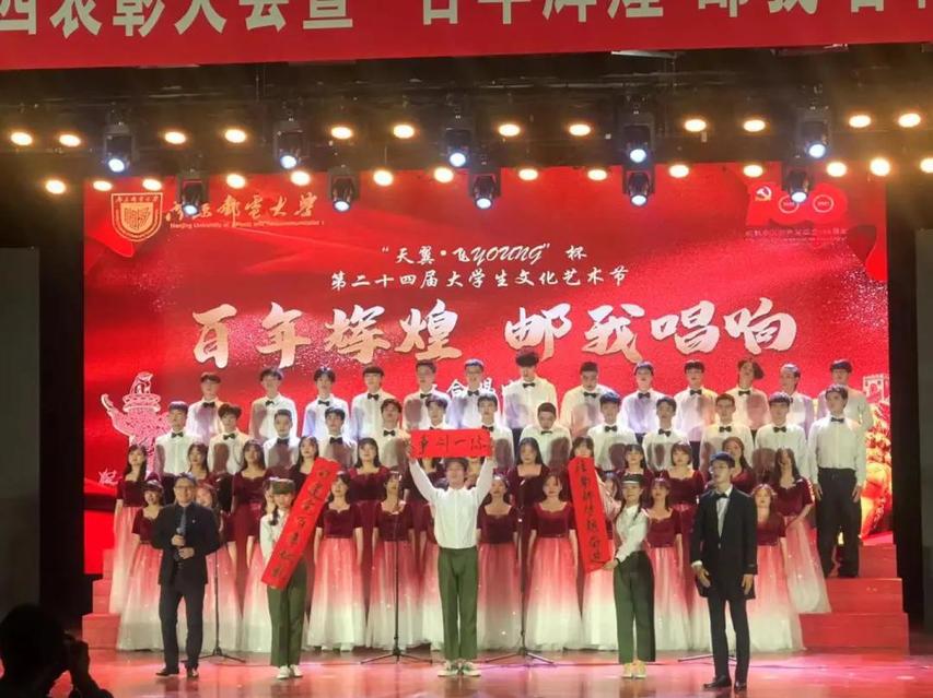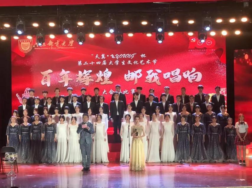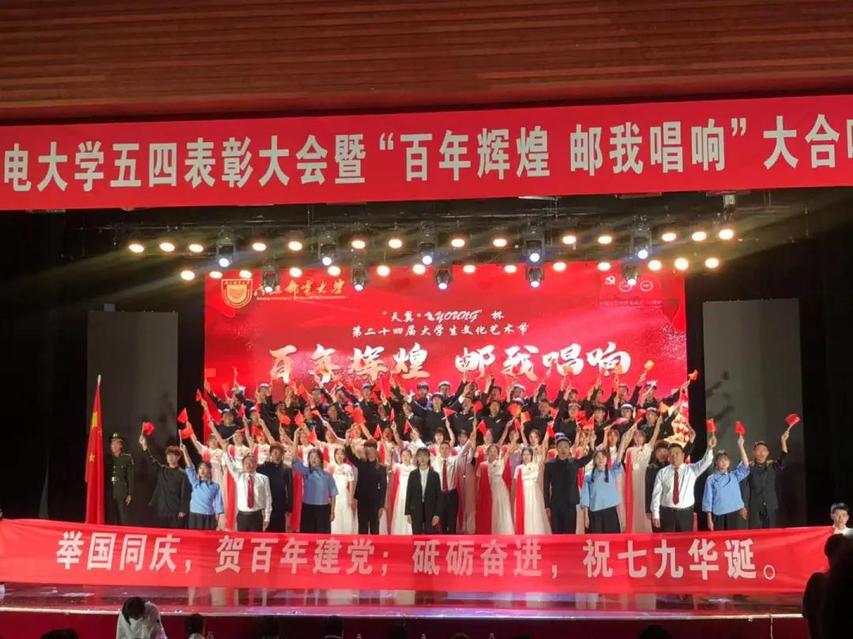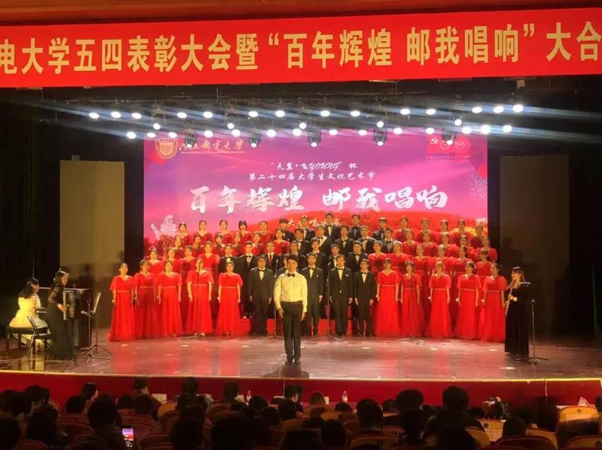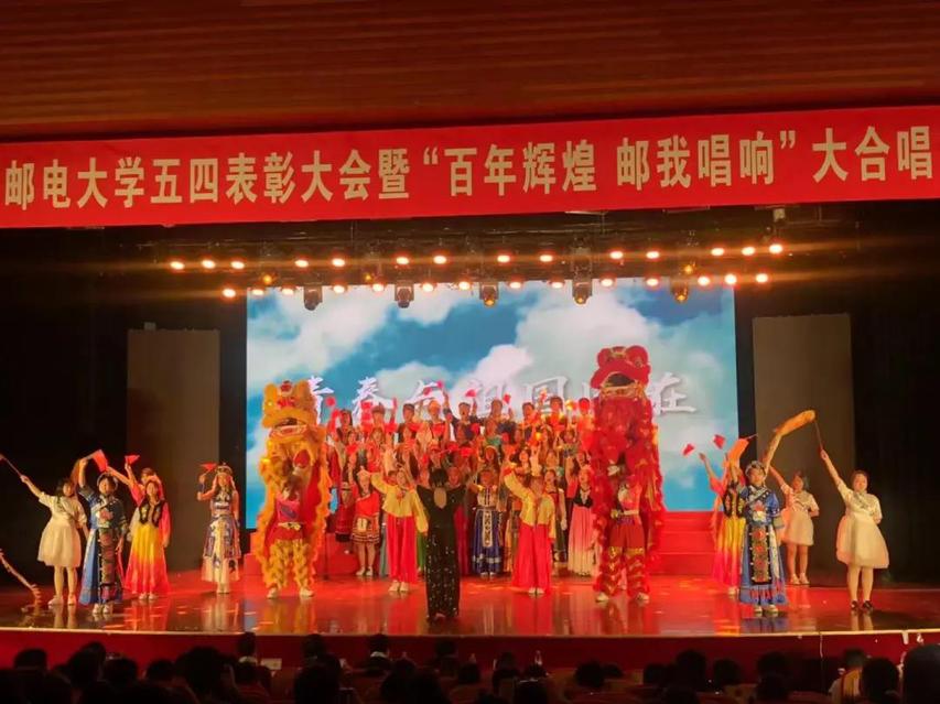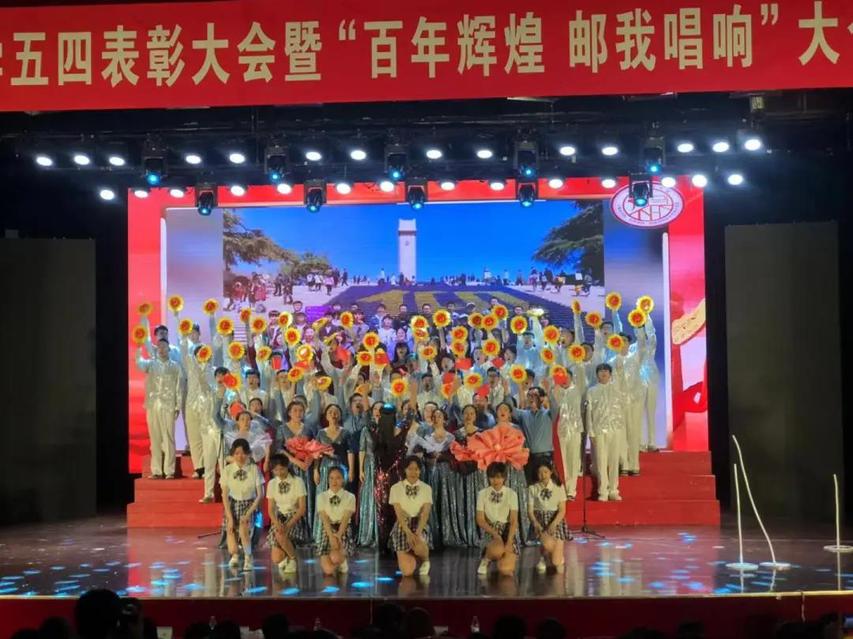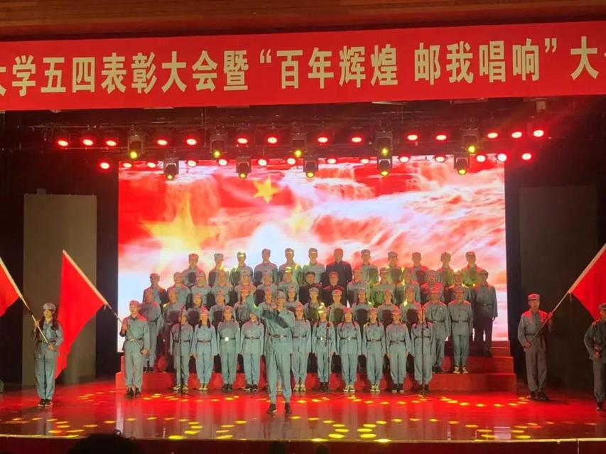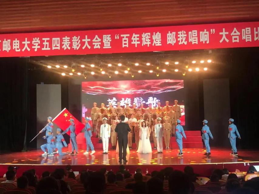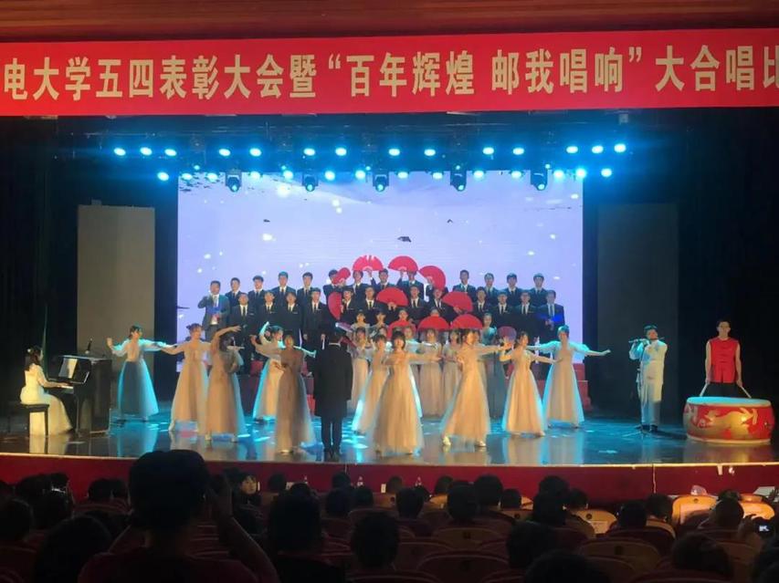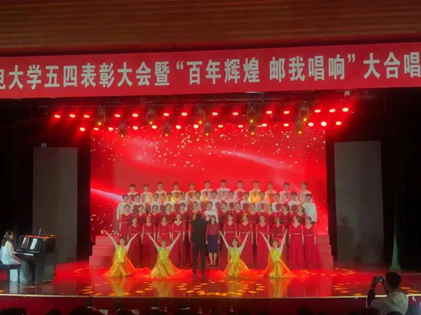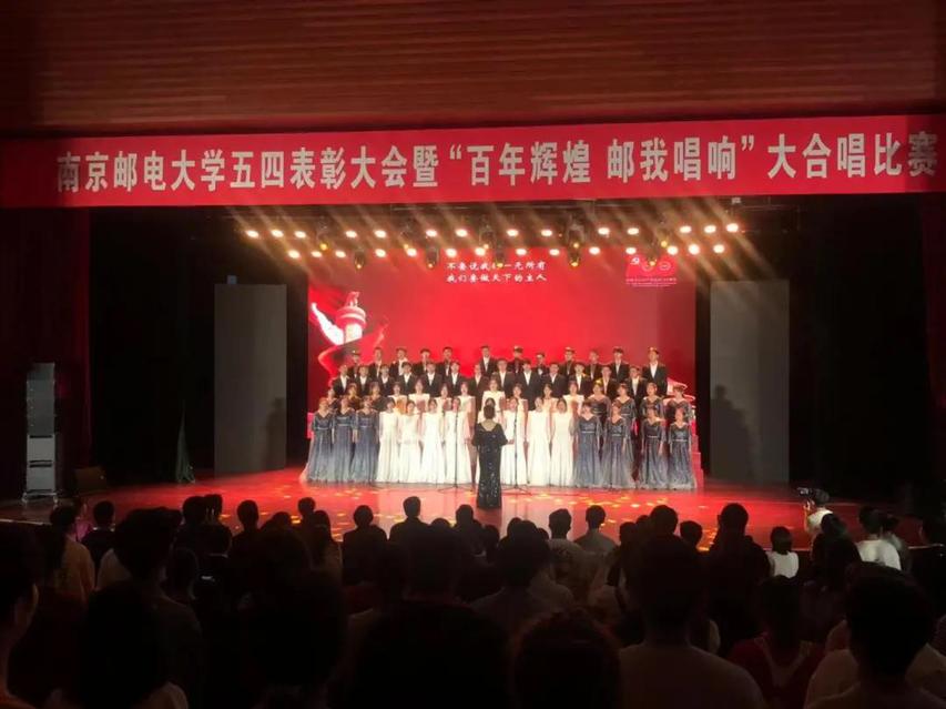 2021年4月29日,我校五四表彰大会暨“百年辉煌 邮我唱响”大合唱比赛在仙林校区青春剧场举行。表彰大会结束后,举办了“百年辉煌 邮我唱响”大合唱比赛。17个参赛学院依次上台表演,以独具匠心的策划、精心编排的歌舞,为观众奉献了一场精彩的演出。