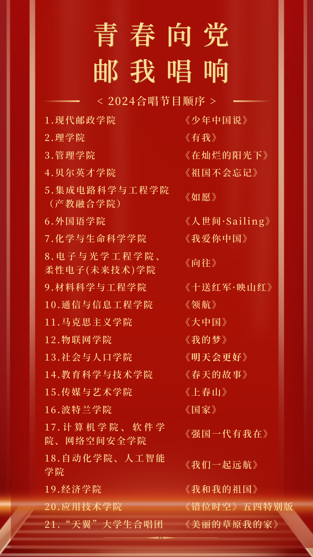 为贯彻落实教育部全面实施学校美育浸润行动,以美育浸润学生,全面提升学生文化理解、审美感知、艺术表现、创意实践等核心素养,丰富学生的精神文化生活,让学生身心更加愉悦,活力更加彰显,人格更加健全,激发师生家国情怀,涵养爱校荣校情感,在全校范围内形成“青春心向党,奋进新时代”的良好氛围,团委(文化艺术中心)将举办“青春向党 邮我唱响”为主题的合唱比赛。