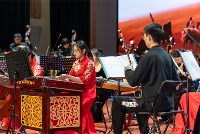 我校“天翼”大学生艺术团民族乐团将以此为契机,继续结合学校信息背景,充分挖掘美育资源、整合美育力量,深挖中外文化交融的故事,创作出响应跨文化交流需求、传递文化自信、展现新时代青年包容视野的作品。